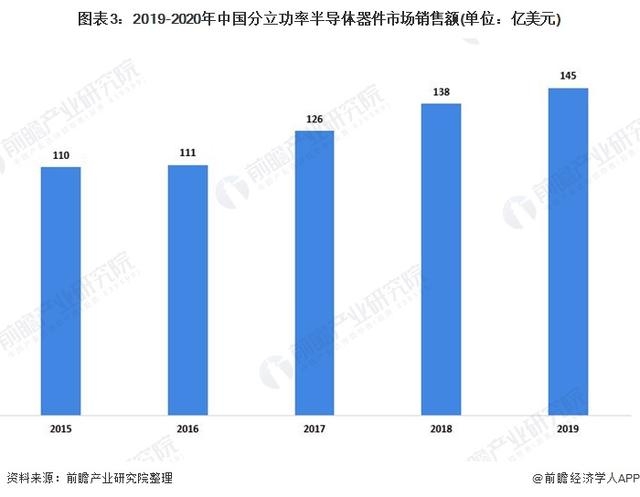 半導(dǎo)體分立器件主要用于各類電子設(shè)備的整流、穩(wěn)壓、開關(guān)、混頻、放大等,具有廣泛的應(yīng)用范圍和不可替代性。目前半導(dǎo)體分立器件產(chǎn)業(yè)通常沿著功率、頻率和微型化等方向發(fā)展,形成了新的器件理論和新的封裝結(jié)構(gòu),各種新型半導(dǎo)體分立器件產(chǎn)品不斷上市,促進(jìn)著電子信息技術(shù)的快速發(fā)展。在中國(guó)市場(chǎng),分立功率半導(dǎo)體器件的市場(chǎng)規(guī)模呈現(xiàn)增長(zhǎng),由2015年的110億美元增至2019年的145億美元,復(fù)合年增長(zhǎng)率約7.3%。展望未來,依據(jù)全球需求的普遍上升,加上中國(guó)制造分立器件如MOSFET、二極管及三極管的龐大產(chǎn)能,市場(chǎng)規(guī)模預(yù)期將會(huì)持續(xù)增長(zhǎng)。