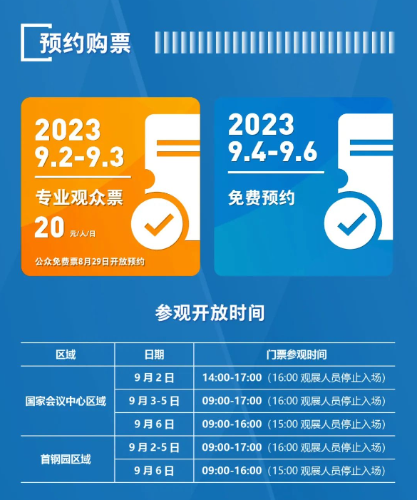 2023年中國國際服務貿易交易會(簡稱服貿會)將于9月2日至6日在北京舉行。即日起,觀眾可在服貿會官網等渠道購買或預約電子門票。