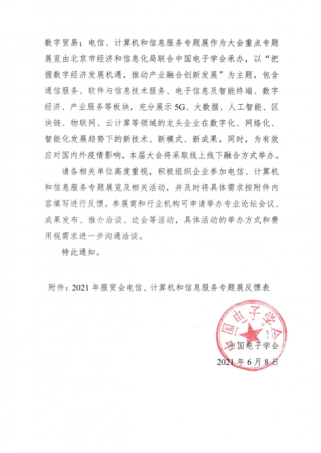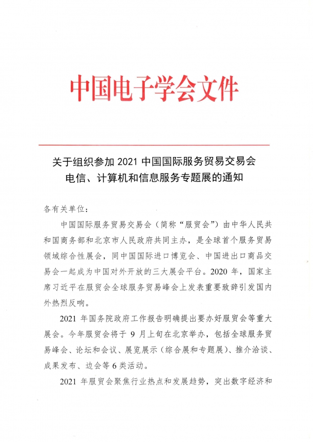 關于組織參加2021中國國際服務貿易交易會 電信、計算機和信息服務專題展的通知