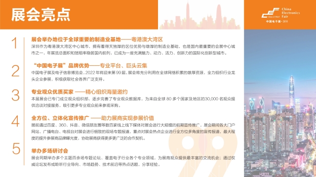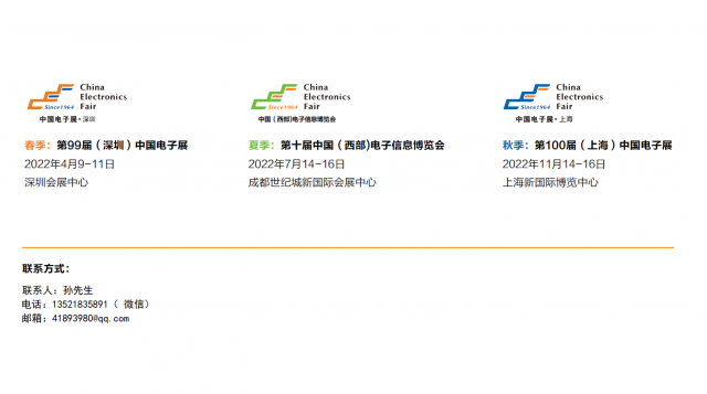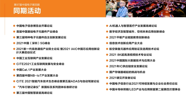 電子元器件是支撐信息技術產業發展的基石,也是保障產業鏈供應鏈安全穩定的關鍵。中國制造業發展進入新時代,由高速發展轉到高質量發展,核心技術自主創新是我國高質發展的重要內容。第99屆中國電子展將繼續以基礎電子元器件為技術牽引,服務于5G、新能源汽車、物聯網、大數據、云計算、照明與顯示安防、消費電子、智能制造等應用行業,精準把握行業發展趨勢,圍繞產業重點領域與平臺對話機會。同期云集全球超1500位演講嘉賓及專家學者參與CEF同期重點論壇活動。