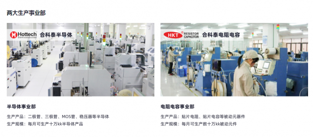 廣東合科泰實業有限公司初創于1992年,是全球領先的半導體生產服務商,是國家認證高新技術企業。初期致力于被動元器件:貼片電阻、貼片電容的研發及生產。于2000年注冊成立深圳市合科泰電子有限公司(今為實業公司旗下子公司)。與此同時,企業擴大規模投資研發并且生產主動元器件:二極管、三極管、場效應管(MOS)及IC等領域系列產品,主要應用于:電源類、可穿戴數碼產品、家電產品、通訊電子、汽車電子、儀器儀表、電子玩具、醫療電子、安防電子、航空航天等領域。