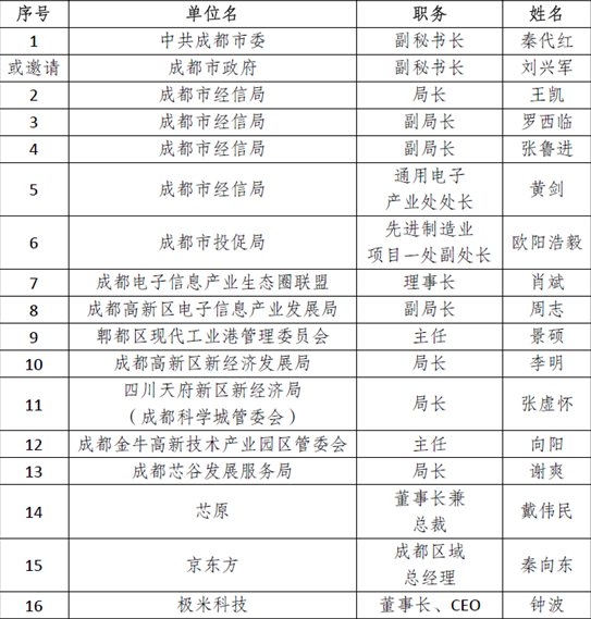 協辦單位:成都高新區電子信息產業發展局、郫都區現代工業港管理委員會、成都高新區新經濟發展局、四川天府新區新經濟局(成都科學城管委會)、成都金牛高新技術產業園區管委會、成都芯谷發展服務局