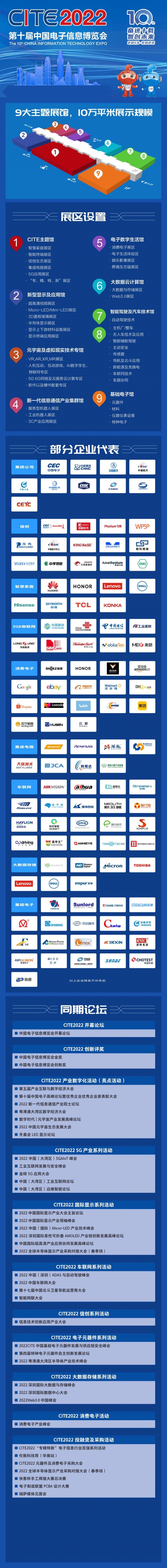 2022年第十屆中國電子信息博覽會在深圳會展中心舉辦,本屆博覽會集中展示包括智慧家庭、智能終端、人工智能、AGV、智能制造、高端芯片、新型顯示、AR/VR、5G和物聯網等代表電子信息產業未來發展的核心內容。通過CITE主題館、新型顯示館、智能制造與AGV移動機器人館、機器人及智能系統館、智能家居及智能硬件館、汽車電子與智能駕駛、鋰電新能源館、電子元器件九個展館等25個專業展區,為業界充分展示了智能時代電子信息產業最新發展成果和趨勢,打造國際化一流電子信息領域展示平臺。
